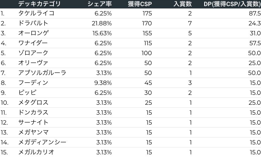 シティリーグ分析レポート(ポケカデータラボ)