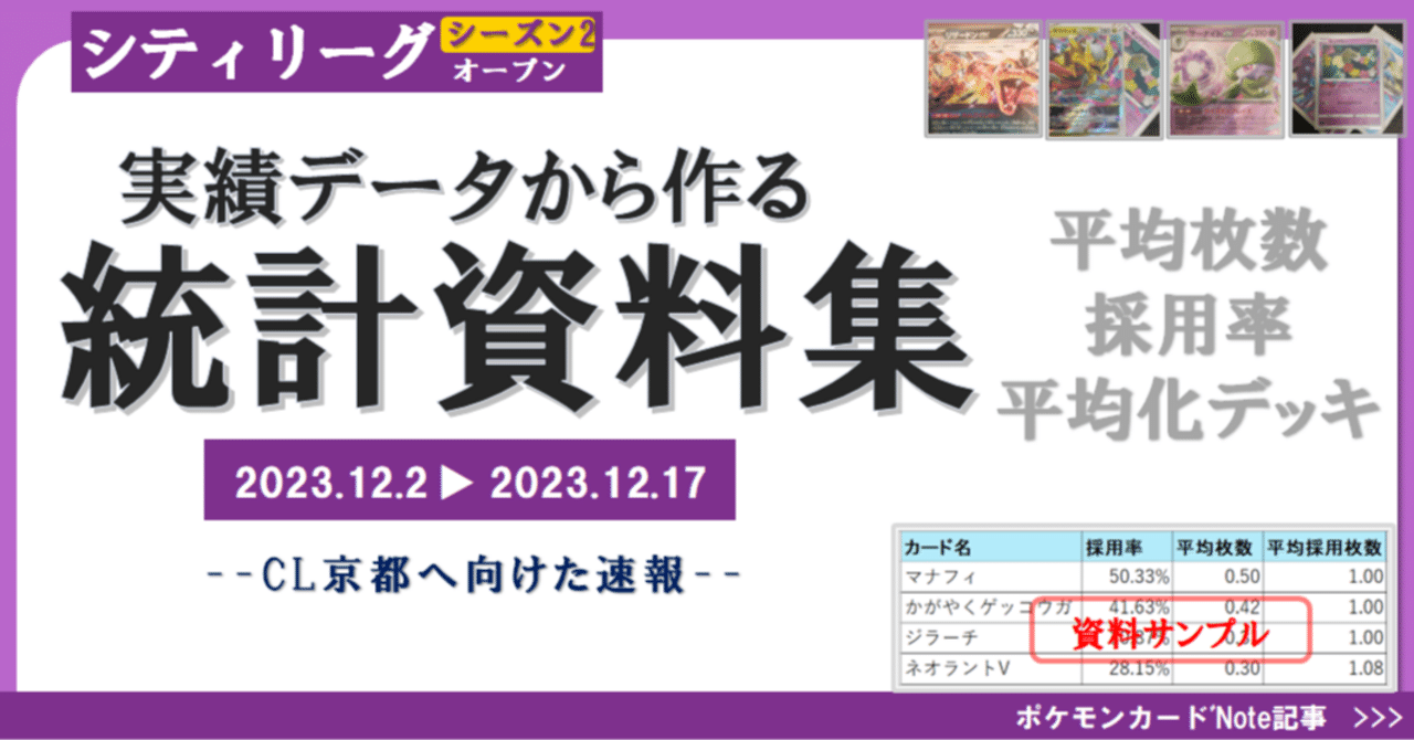 シティリーグの入賞デッキを統計処理してスプレッドシートで提供する企画です。 チャンピオンズリーグ京都大会へ向けて、シャイニートレジャーex環境前半の速報です。 デッキの把握や検討、そして一夜漬けの復習にもお役立てください。 シーズン1の終盤...