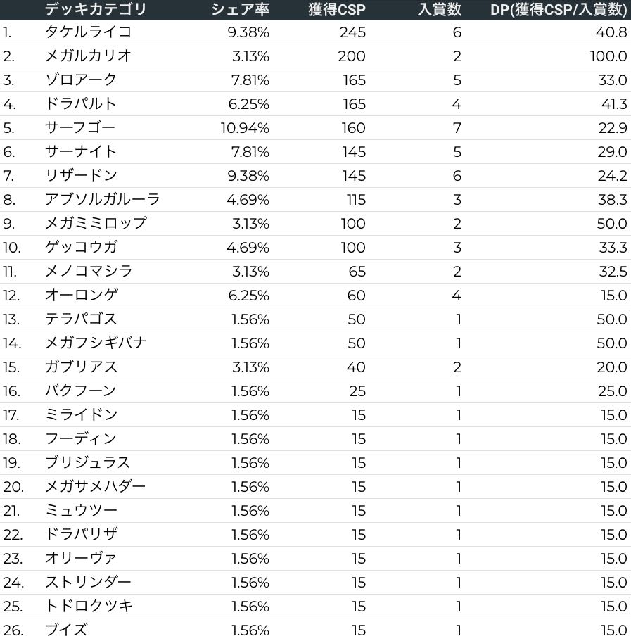 シティリーグ分析レポート(ポケカデータラボ)