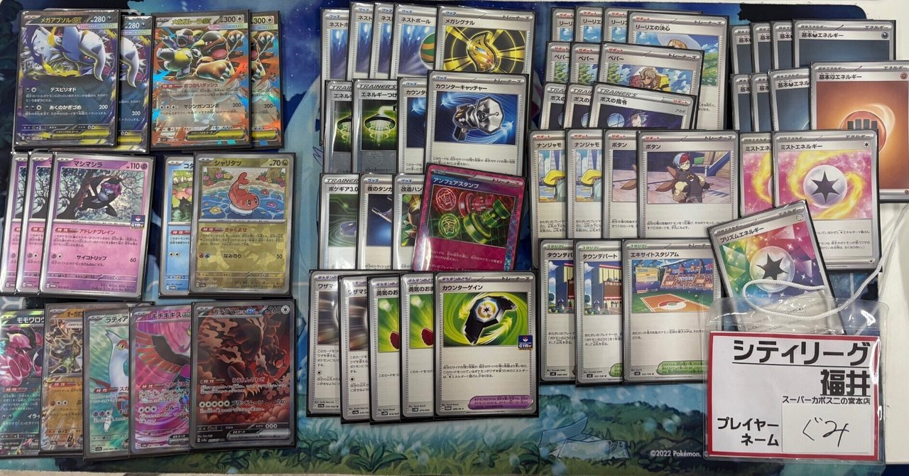 はじめまして、まどぎわです。普段は熊本でポケモンカードをしています。ポケカは去年の変幻の仮面から始めました。 今回は9月14日に行われたT-LEAGUEと9月29日に行われたシティリーグで優勝した記念にnoteを書こうと思いました。といって...