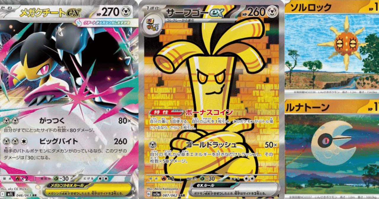1.はじめに はじめまして。 田中(@Ryoka_tcg)といいます。 今回は、私自身がソルルナサーフゴーを使用して、シティリーグで優勝することができましたので、その構築の解説をいたします。 シティS1優勝しました🏆 2025シーズンのS3...