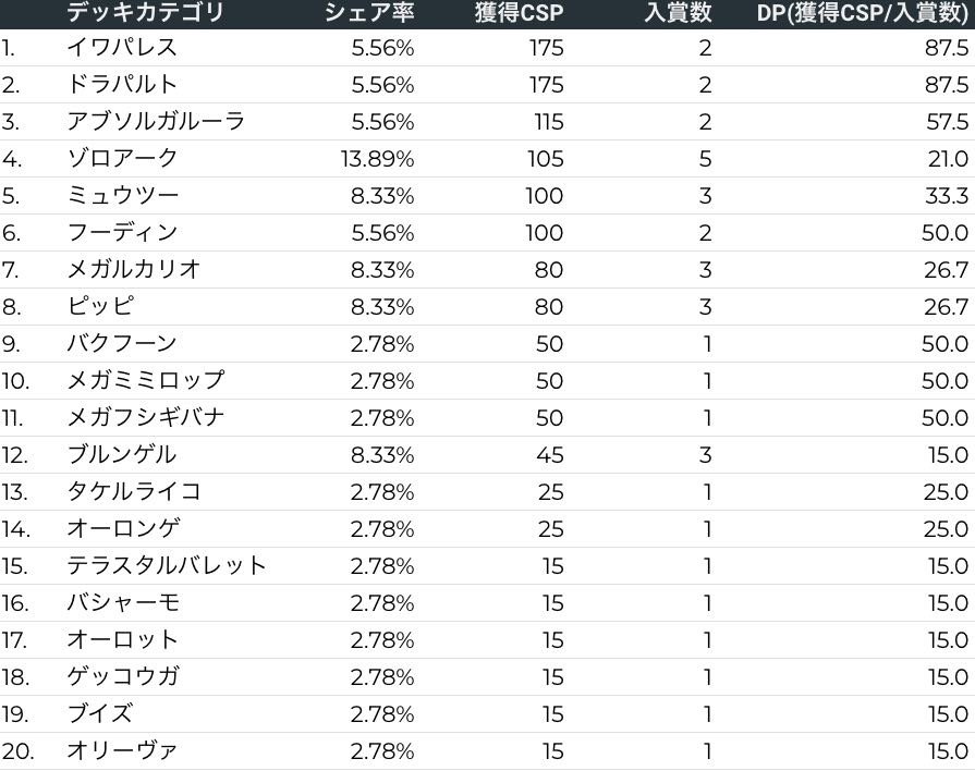 シティリーグ分析レポート(ポケカデータラボ)