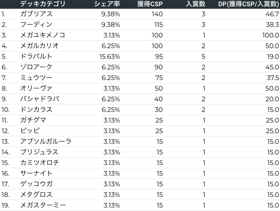 シティリーグ分析レポート(ポケカデータラボ)