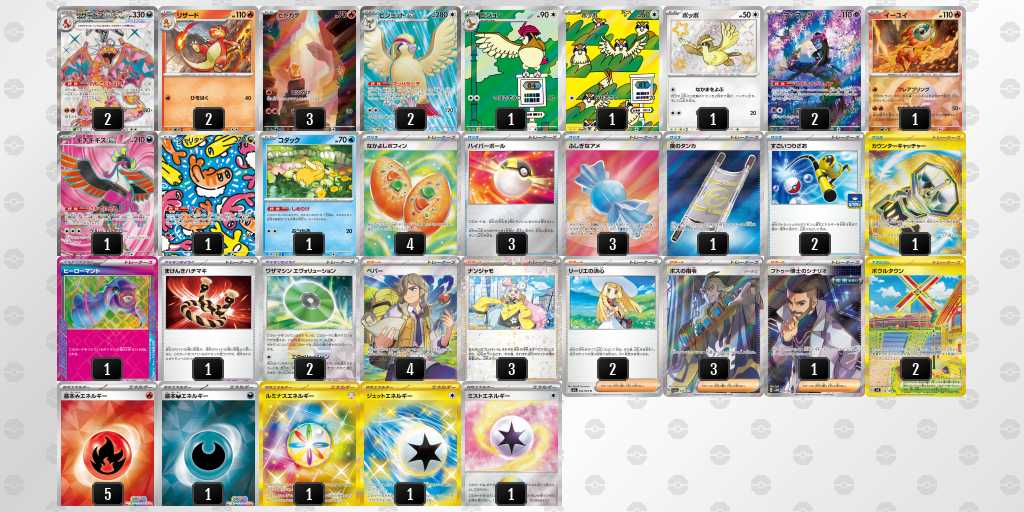 お外ポケカデビューからずっと相棒だったリザードンと最後のCLで目標だった勝利賞を達成出来て嬉しいです。リザードン3、ボス3が拘りポイントです。