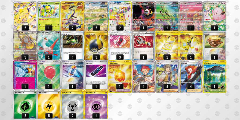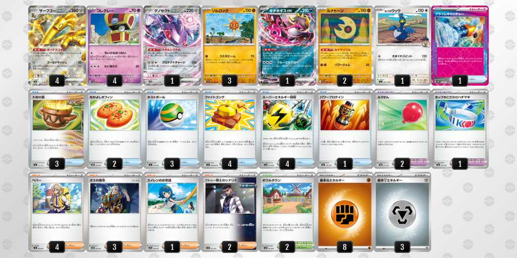 ほうせきさがしを抜き、非エクアタッカー3種類とイキリンコ2枚採用にしました。サーフゴーとサーナイトに3回ずつ当たって死ぬかと思いました。