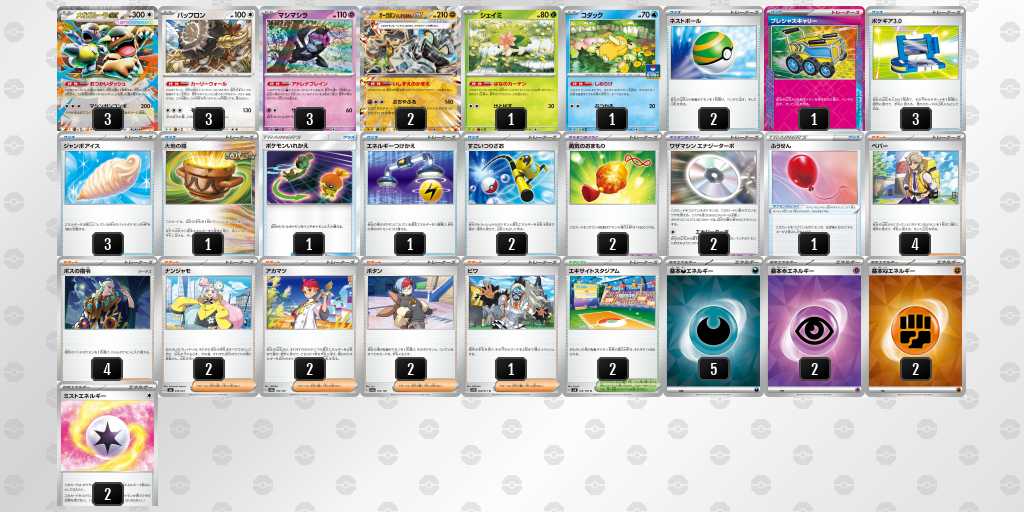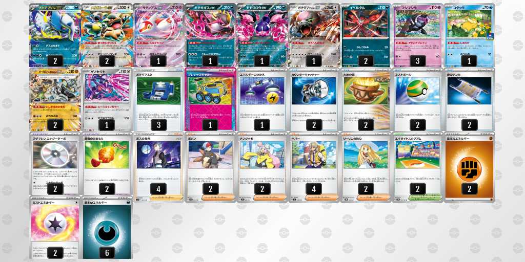 (感想)初CLでしたが楽しかったです!(選択理由)シティs2の毒トドロクツキの後、悪タイプでサポに頼らないエネ加速を探していてストリンダーと出会い、そこからストリンダーバレットになりました。(ポイント)アラブルタケ主体にしてサイド2-1交換を基本にしていること。ロケット団のびっくりボムの2点とストリンダーで生じる3点の5点で相手のexを急襲できること。スボミーの場持ちを良くしてグッズロックを長くして、準備の時間を作るためのお守り2枚採用。