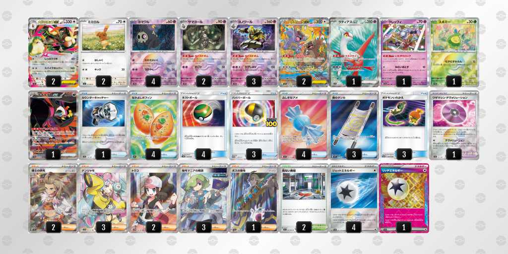 ナンジャモ2はフーディン対策と初手の事故対策。つりざおMAXはスーエネ5枚目の代わりとトラッシュ回収札の代わり。ネッコアラはメタ対策。ハイパーボールを含めボール系を多めに採用。サナの終盤グッズロック対策が出来てなかった。