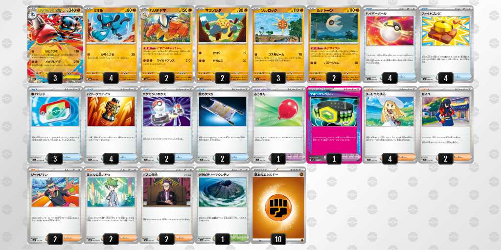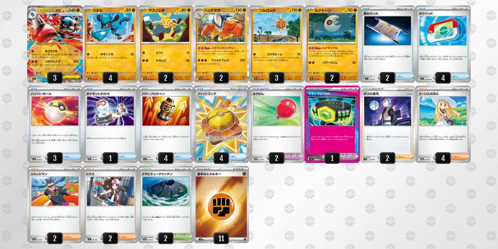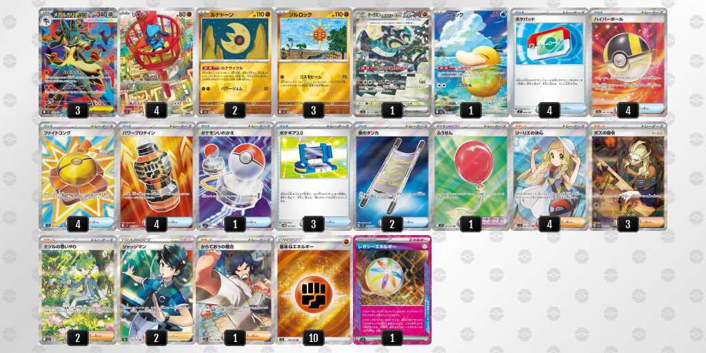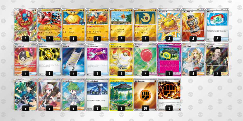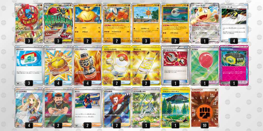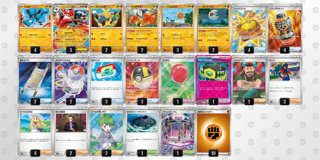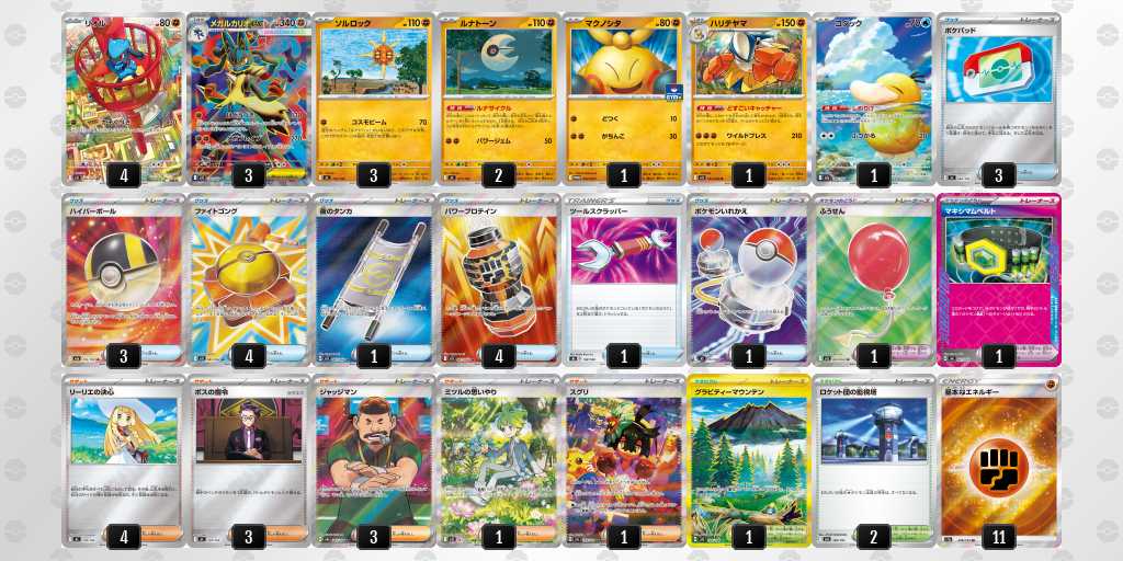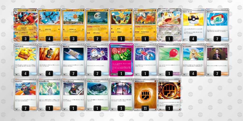 前日にふうせん2枚目▶︎ハイパーボール4枚目に変更しました。実際、リーリエの決心やルナサイクルなどで引ける確率が上がり、当日も進化できなくて遅れるなどがあまり無かったです。