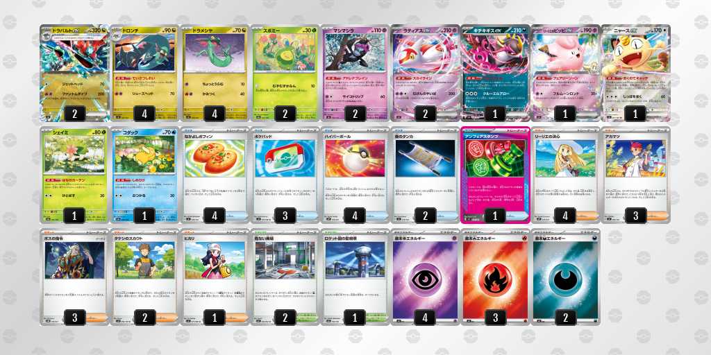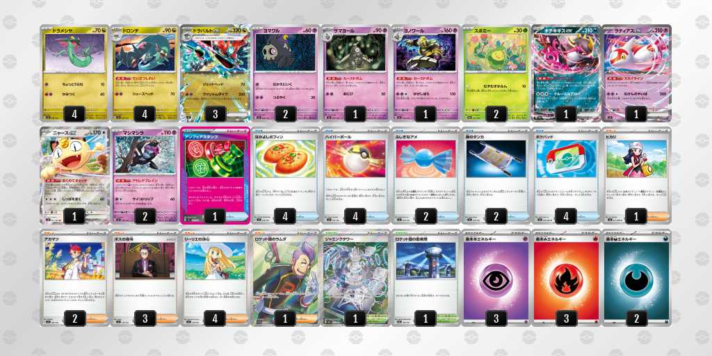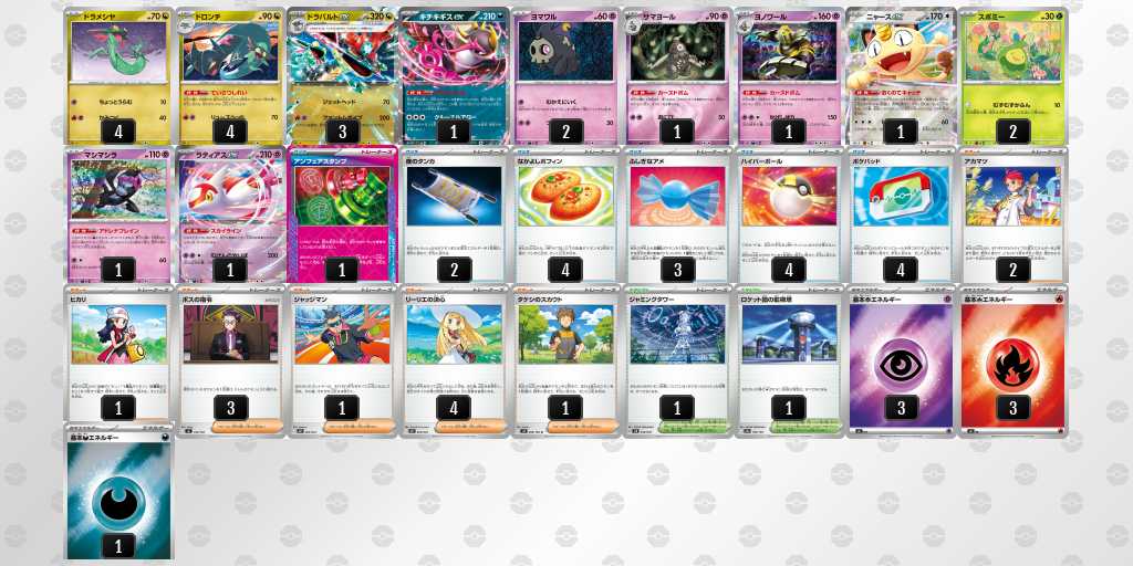 ドラパルトew、メガルカリオexに抗えて、その上で高耐久なメガexにも有利なサイド交換取れるデッキを握りたあと思って選択しました。