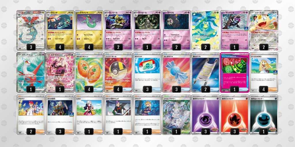 ドラパルトとメガルカリオが多い今の環境でメガディアンシーのデッキが増える予想で選択してみました。