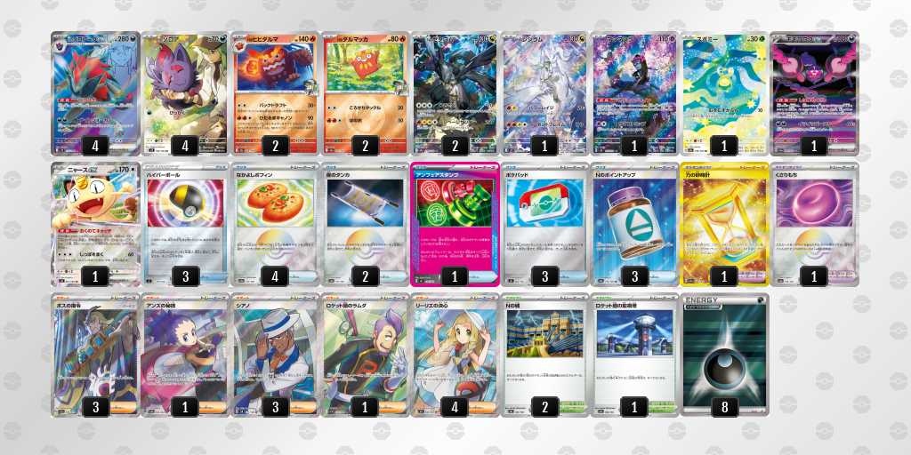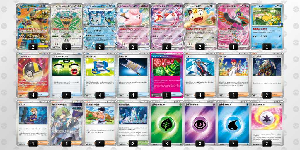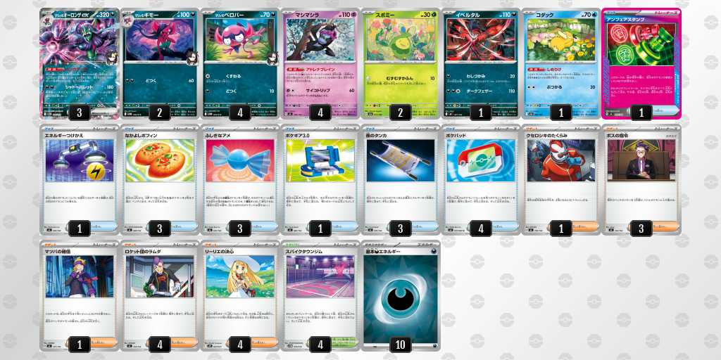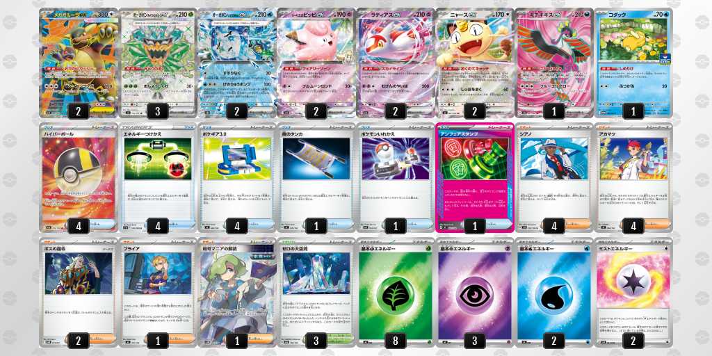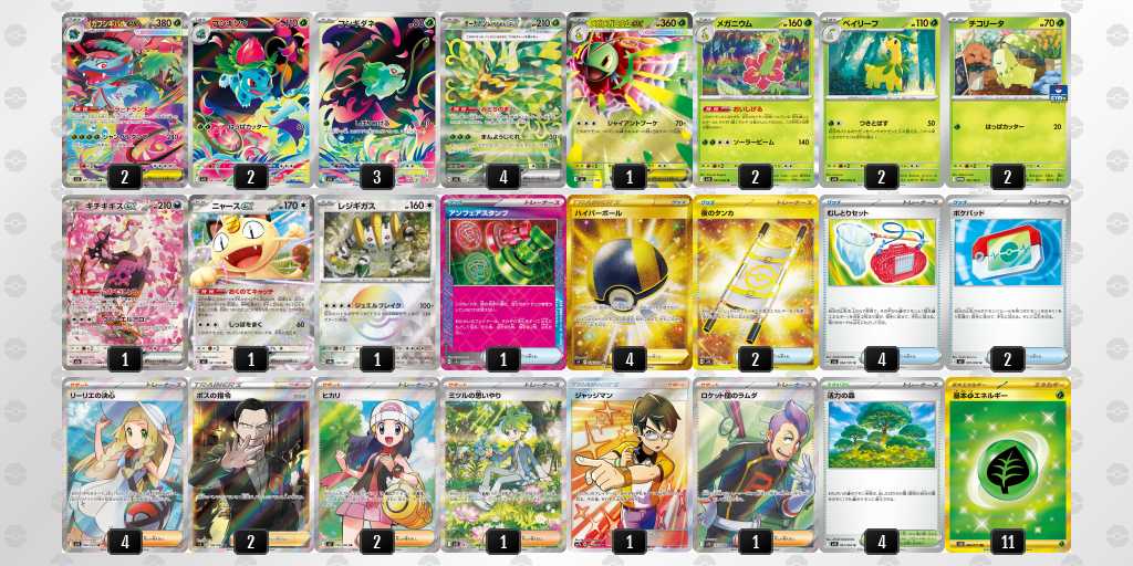 雑多環境ながらオーロンゲ、ゾロアーク、ガブリアス、アブソル等の草弱点のデッキを使用するプレイヤーが多いと判断したためフシギバナを選択しました。
