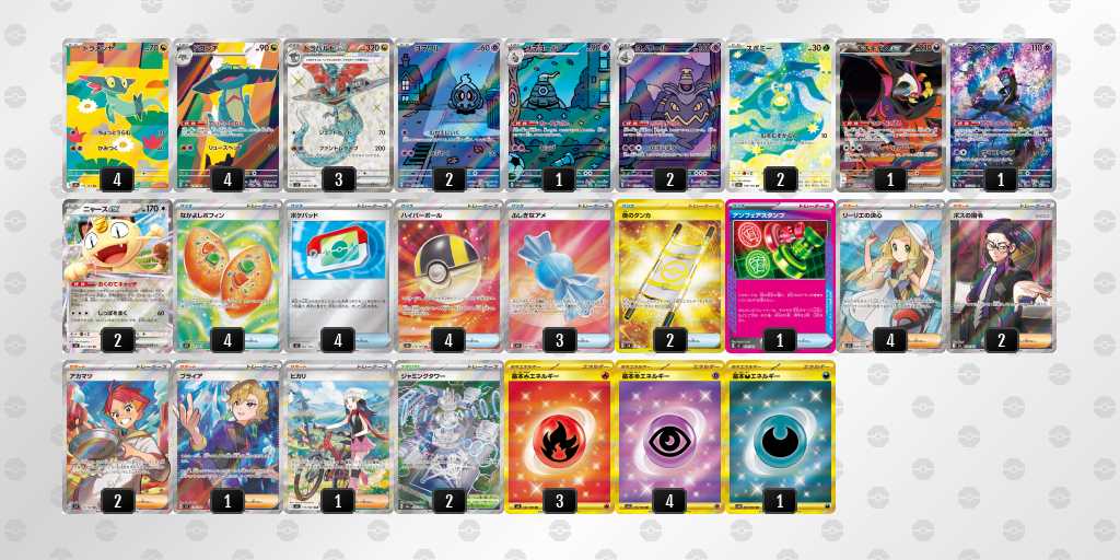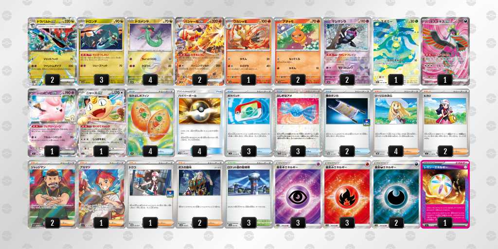 ニャースやガルーラ、宝石など回すデッキが多いと思い、監視塔3枚採用。最終局面でドラパルトにレガシー手貼り、監視塔貼り、ジャッジマンで何回も勝てました!