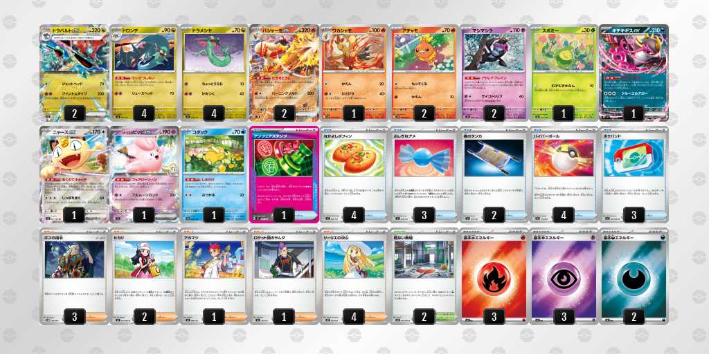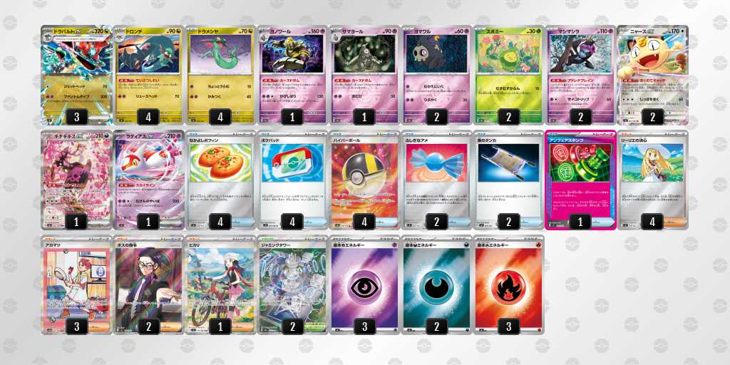 盤面上のポケモンの特性で山札を引けるデッキであり、手札枚数が火力に直結するため特定の対面でしか使わないカードも採用しやすく広範囲に対して有利な構築にできると判断したため。