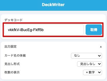 ステップ2:DeckWriterに貼り付けて「取得」