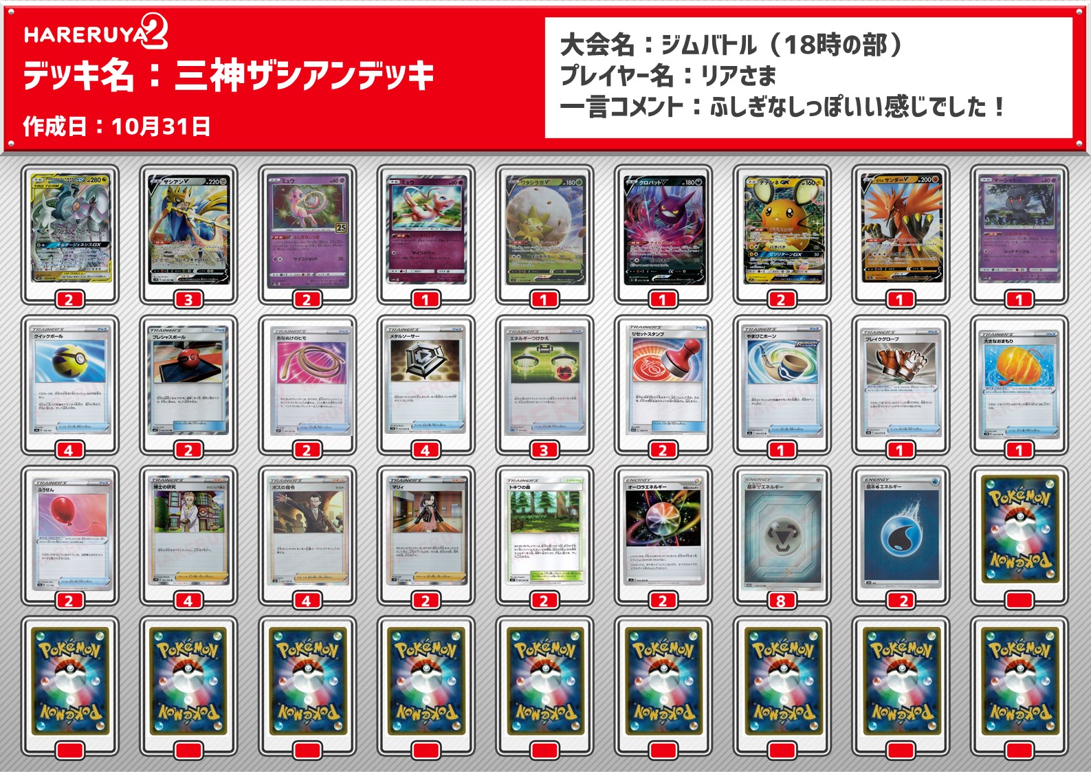 - 三神/ザシアンvデッキ(シティ愛知宝島:ベスト4)