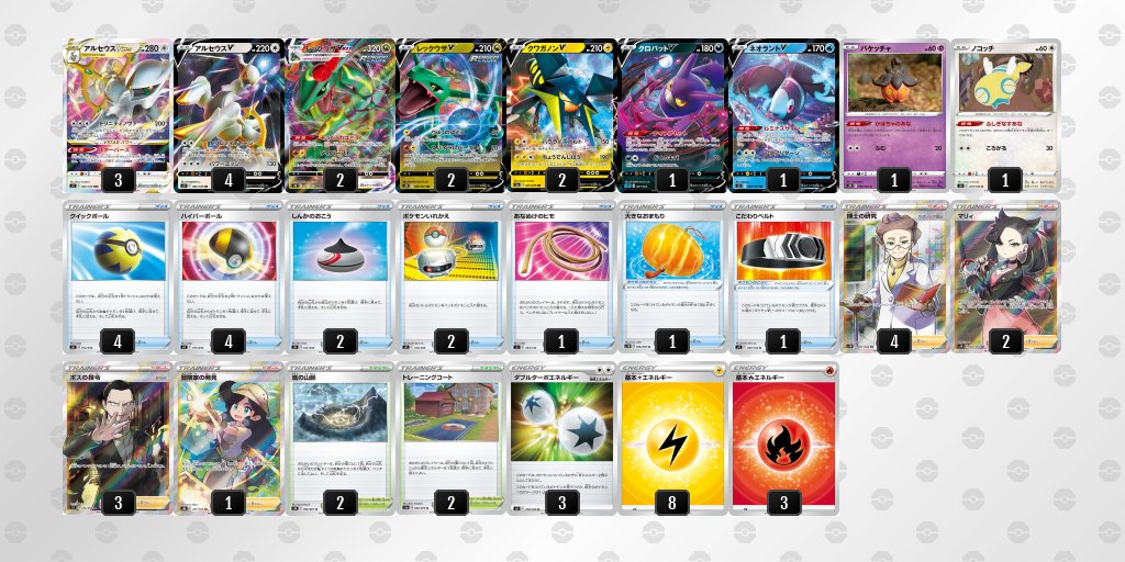 各タイプごとのデッキ検索 【ポケカ】大会優勝デッキまとめ(2022年02月22日)【シティリーグ(大阪)・ジムバトル】 X Facebook LINE Pinterest コピー 2022.02.24 記事内に広告が含まれています。 ポケモンカードゲーム MEGA 拡張パック インフェルノX BOX created by Rinker Pokémon Amazon 楽天市場 Yahooショッピング 目次 ◆鋼型アルセウスVSTARデッキ鋼型アルセウスVSTAR/ザマゼンタV/マッギョV/Aライコウ/ビッパ/モココデッキ◆ジュラルドンVMAXデッキジュラルドンVMAX/アルセウスVSTAR/結晶の洞窟デッキ◆レックウザVMAXデッキレックウザVMAX/アルセウスVSTAR/モココ/パルスワンV/嵐の山脈デッキレックウザVMAX/アルセウスVSTAR/クワガノンVデッキ【ダークリージョン環境】◆アルセウスVSTARデッキアルセウスVSTAR/ガラルファイヤーV/ガラルサンダーV/バレットデッキアルセウスVSTAR/ガラルファイヤーV/ガラルサンダーV/バレットデッキアルセウスVSTAR/ガラルファイヤーV/ガラルサンダーV/バレット/ファッションモールデッキ◆アイアントLOデッキアイアントLO/チラチーノ/タルップル/ガラル鉱山デッキ◆エクストラこくばバドレックスVMAXデッキこくばバドレックス/エルフーンVSTARデッキ【草】【水】【超】ダダリン・ゴリランダー・白馬・インテレオン・カイオーガ・ミュウ 優勝デッキ【闘】【悪】連撃ウーラオス・ゲンガー・カラマネロVMAX 優勝デッキ ◆鋼型アルセウスVSTARデッキ 鋼型アルセウスVSTAR/ザマゼンタV/マッギョV/Aライコウ/ビッパ/モココデッキ 本日のポケカ新弾バトル優勝はれんぼ様の【アナアナバレット】です!コメント:穴があったら入りたい優勝おめでとうございます!2枚めの写真はたくろー様のデッキです!並べられてたので勝手に載せさせていただきました! pic.twitter.com/yWpWSrkr0n— CARDSHOP蒼猫亭@神戸元町 (@aonekotei_kobe) February 22, 2022 【ポケカ】鋼型アルセウスVSTAR優勝デッキレシピまとめ鋼タイプをメインとしたアルセウスVSTARの最新優勝デッキをまとめています。 ◆ジュラルドンVMAXデッキ ジュラルドンVMAX/アルセウスVSTAR/結晶の洞窟デッキ ポケモンカード新弾バトル優勝くわさんでした♪おめでとうございます🎉#ポケモンカード pic.twitter.com/kEF1O6edzV— レアル・トマト別府店 (@tomato5963beppu) February 22, 2022 【ポケカ】ジュラルドンVMAX優勝デッキまとめ【DuraludonVMAX】アルセウスVSTAR実装で超強化されたジュラルドンVMAXの優勝優勝デッキを日々まとめています。 ◆レックウザVMAXデッキ レックウザVMAX/アルセウスVSTAR/モココ/パルスワンV/嵐の山脈デッキ 本日開催‼️ #ポケカ #ジムバトル は6名の方にご参加頂きました‼️優勝『メイドラオタク』さんデッキ名『レックアルセウス』コメント『ポケカ辞めたいのに辞めさせて貰えません』ご参加ありがとうございました✨ pic.twitter.com/EmndojvTwg— TSUTAYA嵐山店 トレカ&ゲーム情報 (@TSUTAYA1462) February 22, 2022 レックウザVMAX/アルセウスVSTAR/クワガノンVデッキ【ダークリージョン環境】 ジムバトル風 凱杯#17全勝はZitsuhaRikeiさん、トウムさん、凱です。おめでとうございます!ご参加いただきありがとうございました!!#凱杯 pic.twitter.com/3ztRq6Lpet— 凱杯(Yoshi Cup)@毎週火曜日開催 (@YoshiCup_TCG) February 22, 2022 【ポケカ】レックウザVMAX優勝デッキまとめ【そうくうのはどう】レックウザVMAXの最新優勝デッキレシピまとめてます。【随時更新】 ◆アルセウスVSTARデッキ アルセウスVSTAR/ガラルファイヤーV/ガラルサンダーV/バレットデッキ 2022年2月22日ポケモンカード新弾バトル結果参加:15名優勝:Justice「ニンフィア強かったです。ウーラオスを倒せました。」Justiceさん、おめでとうございます! pic.twitter.com/7ylj0GFiuf— カードショップ彩々 (@saikoro1to3) February 22, 2022 アルセウスVSTAR/ガラルファイヤーV/ガラルサンダーV/バレットデッキ 【#ポケカ 大会情報】本日のポケモンカードジムバトルは9名様のご参加でした。優勝者:つなさんど様デッキ名:アルセウスバレットコメント:ポケカはご飯!優勝おめでとうございます! pic.twitter.com/hYbrntc8q1— ホビーステーション千葉店@Shadowverse EVOLVE発売中!! (@HBSTchiba) February 22, 2022 アルセウスVSTAR/ガラルファイヤーV/ガラルサンダーV/バレット/ファッションモールデッキ 【大会結果報告】本日の #ポケモンカード 公認大会にご参加いただき、ありがとうございます参加者:7名優勝はクサエネさんです。おめでとうございます。デッキ:アルセウスバレットコメント:雪道はつらい次回は2月25日(金)16:00からを予定しております。 pic.twitter.com/n7XxVAFqi7— 0130TSUTAYA札幌菊水店 (@tsutaya_kikusui) February 22, 2022 【ポケカ】アルセウスVSTAR優勝デッキレシピまとめアルセウスVSTARを使用した最新優勝デッキレシピをまとめてます。 ◆アイアントLOデッキ アイアントLO/チラチーノ/タルップル/ガラル鉱山デッキ #ポケカ今日のジムバトルは62名で開催です❗❗沢山のご参加、ありがとうございます😂全勝者はコチラ💥サカキ 様/Jimmy 様/タイシン様/ちととかち様/ぐっしー様/たくちゃん様/朝バナナ 様/くうた 様/おめでとうございます😆🎉明