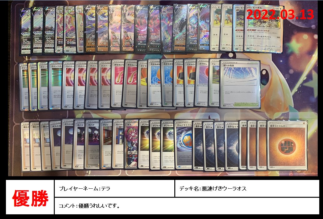 - れんげきウーラオスVMAX/アルセウスVSTAR/ビーダル/エンペルトVデッキ(シティ福岡:優勝)