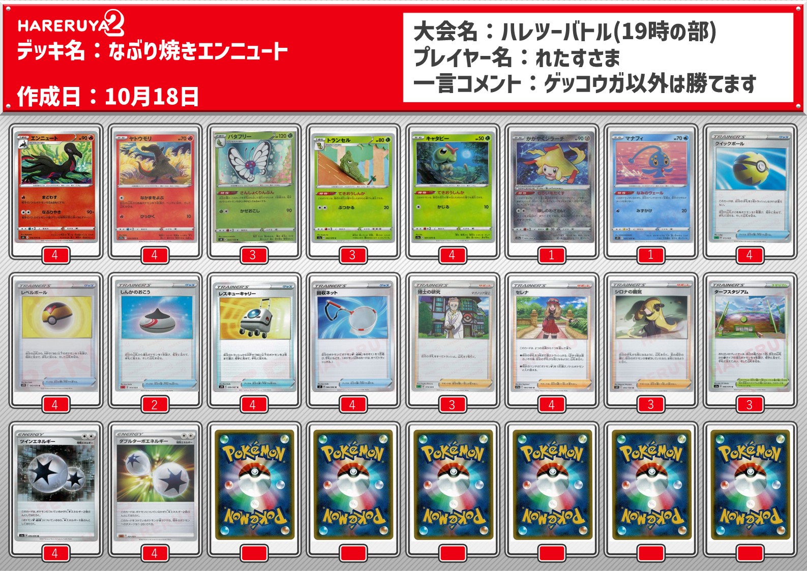 試験的に自主大会の情報をまとめ、いつ、どこで開催している大会なのか把握できるように共通のテンプレートでツイート活動(ハッシュタグ#ポケカ自主大会)しております。