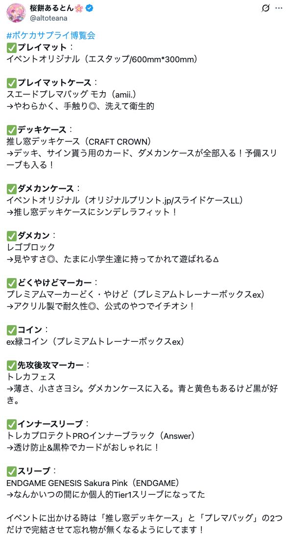 あるとんさんめちゃめちゃ詳細にサプライの内容をポストに投稿されているのでぜひ参考にしてください。
